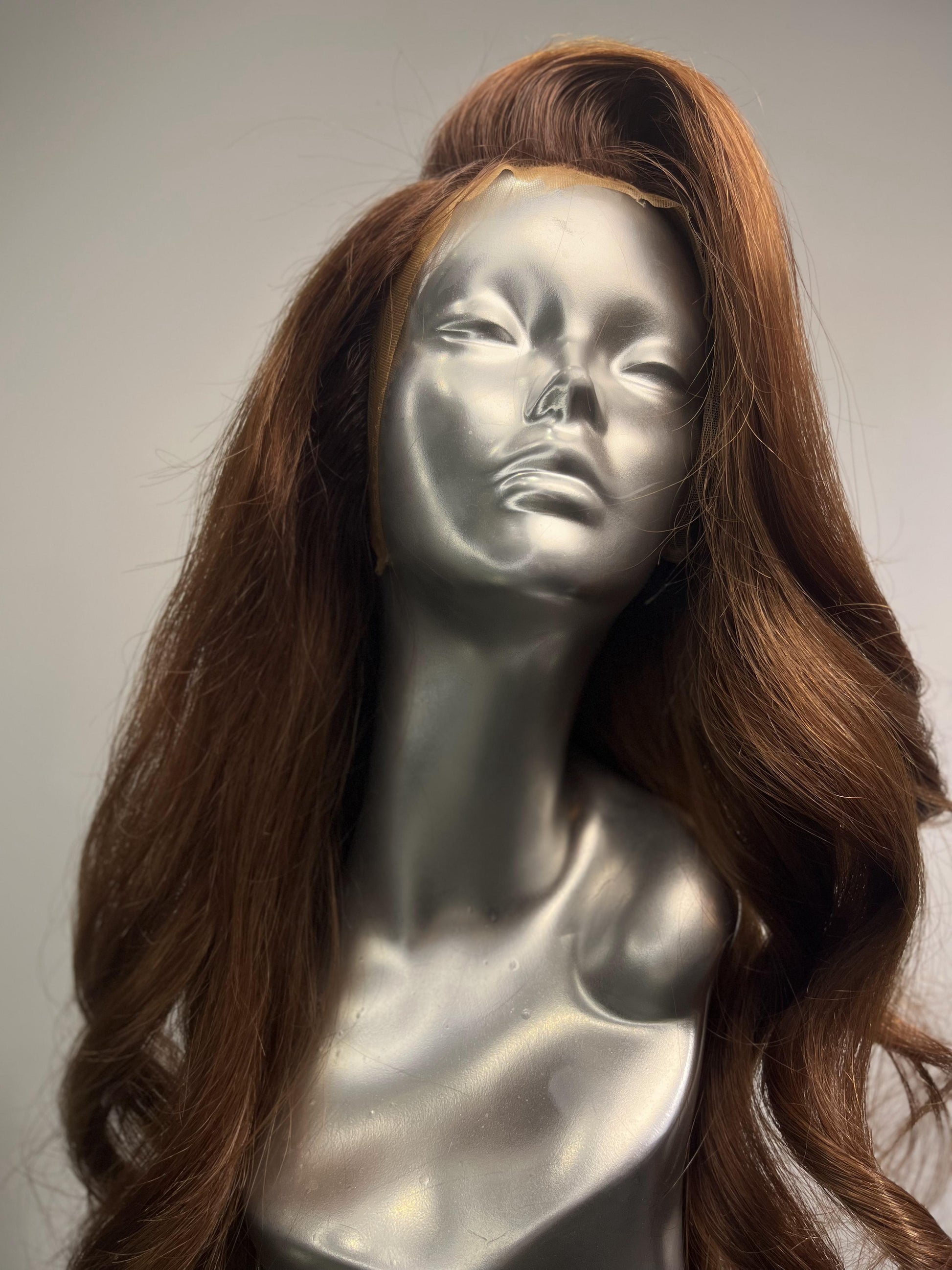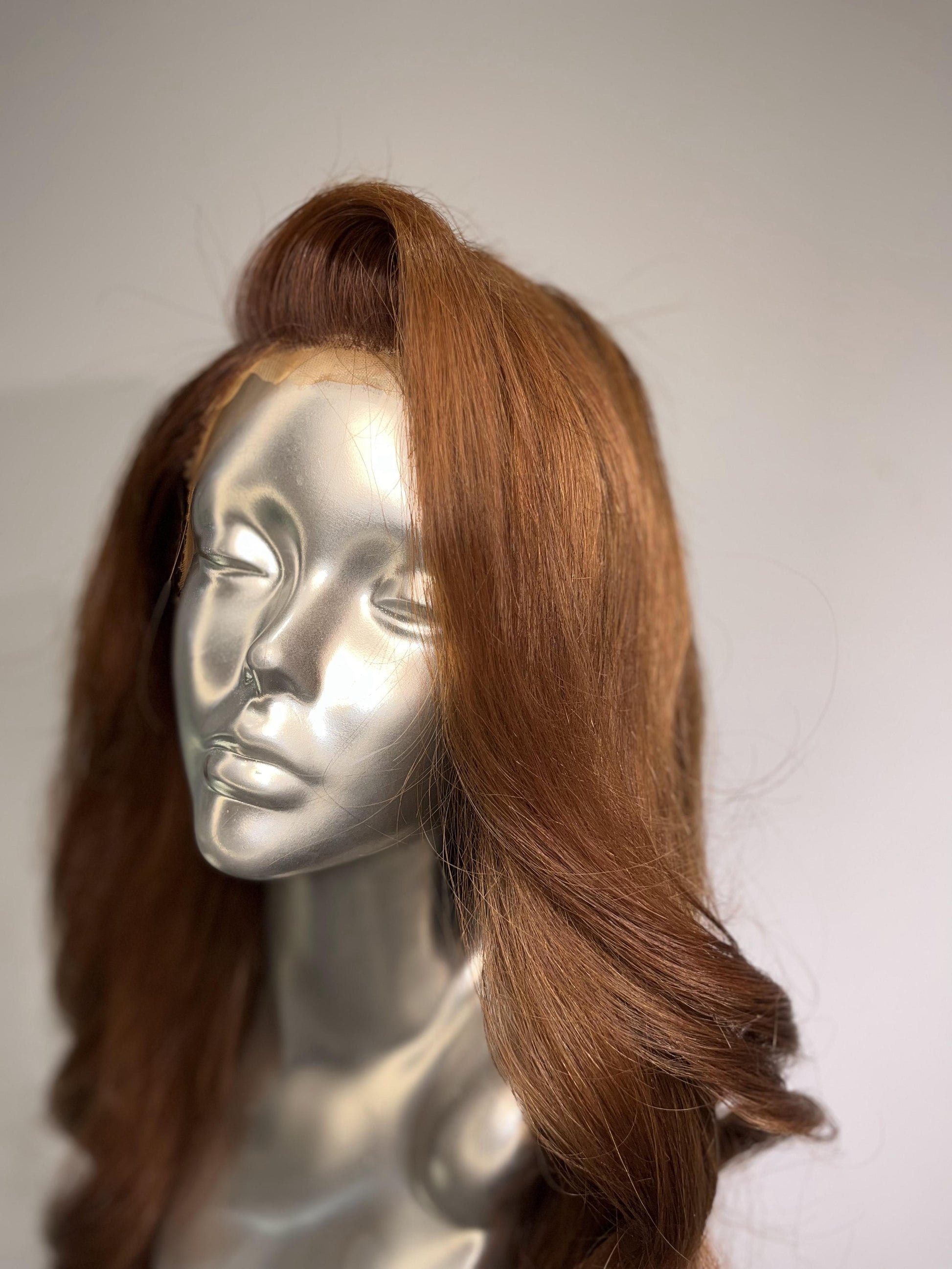 (Red Bronze) - Made with high-quality human hair. 26-inch length, 150% density, bleached knots, pre-plucked, baby hairs added.