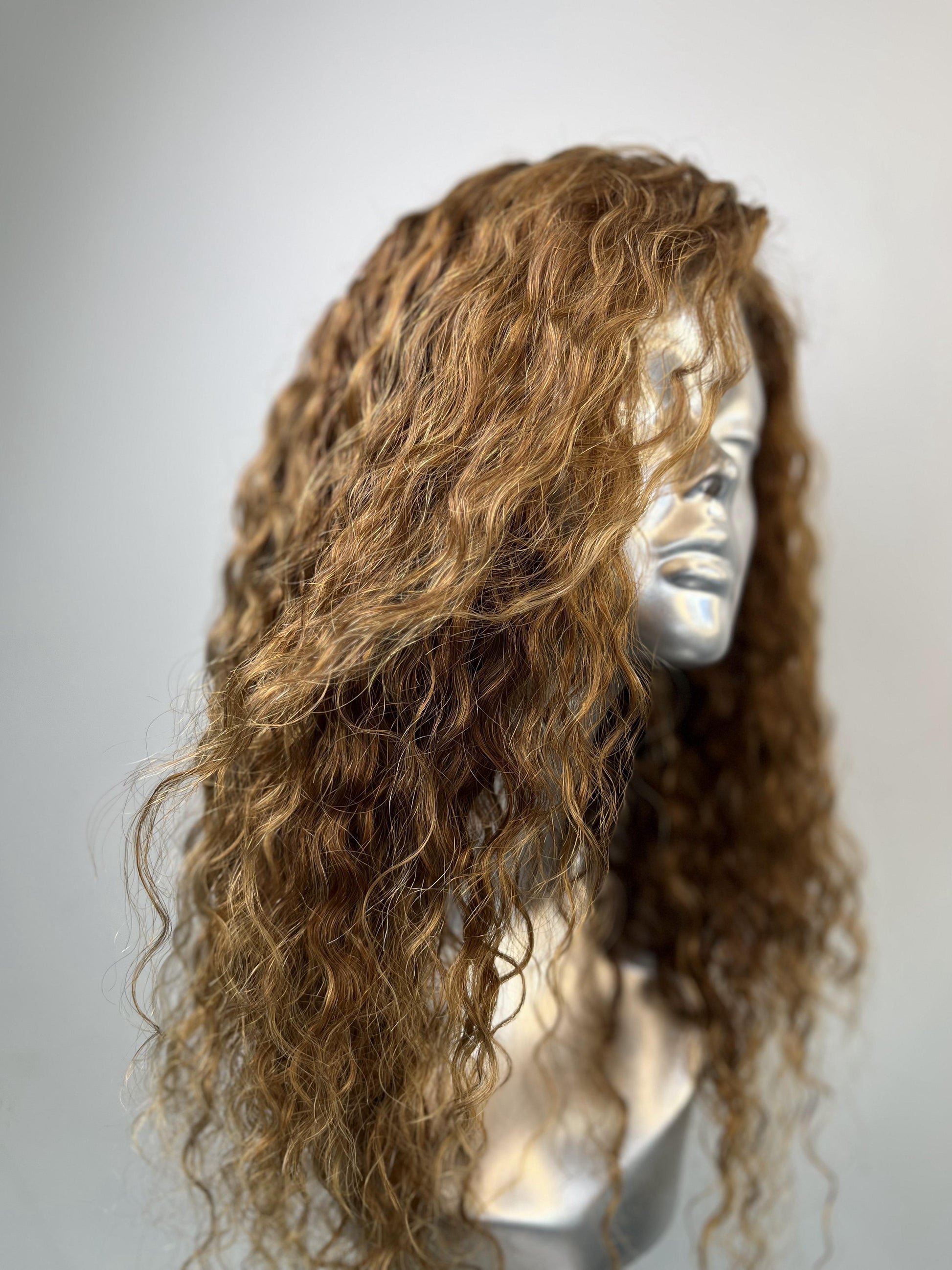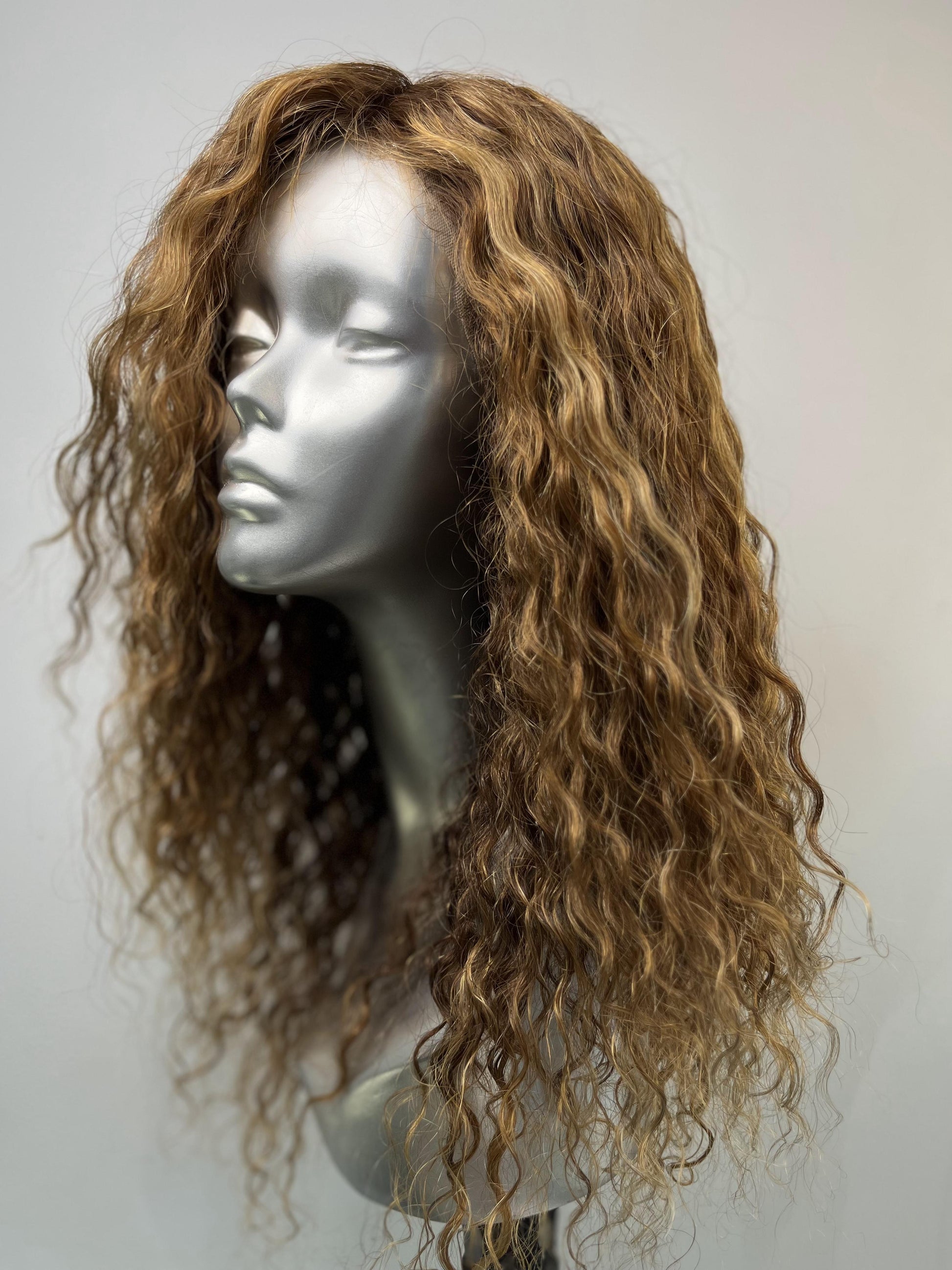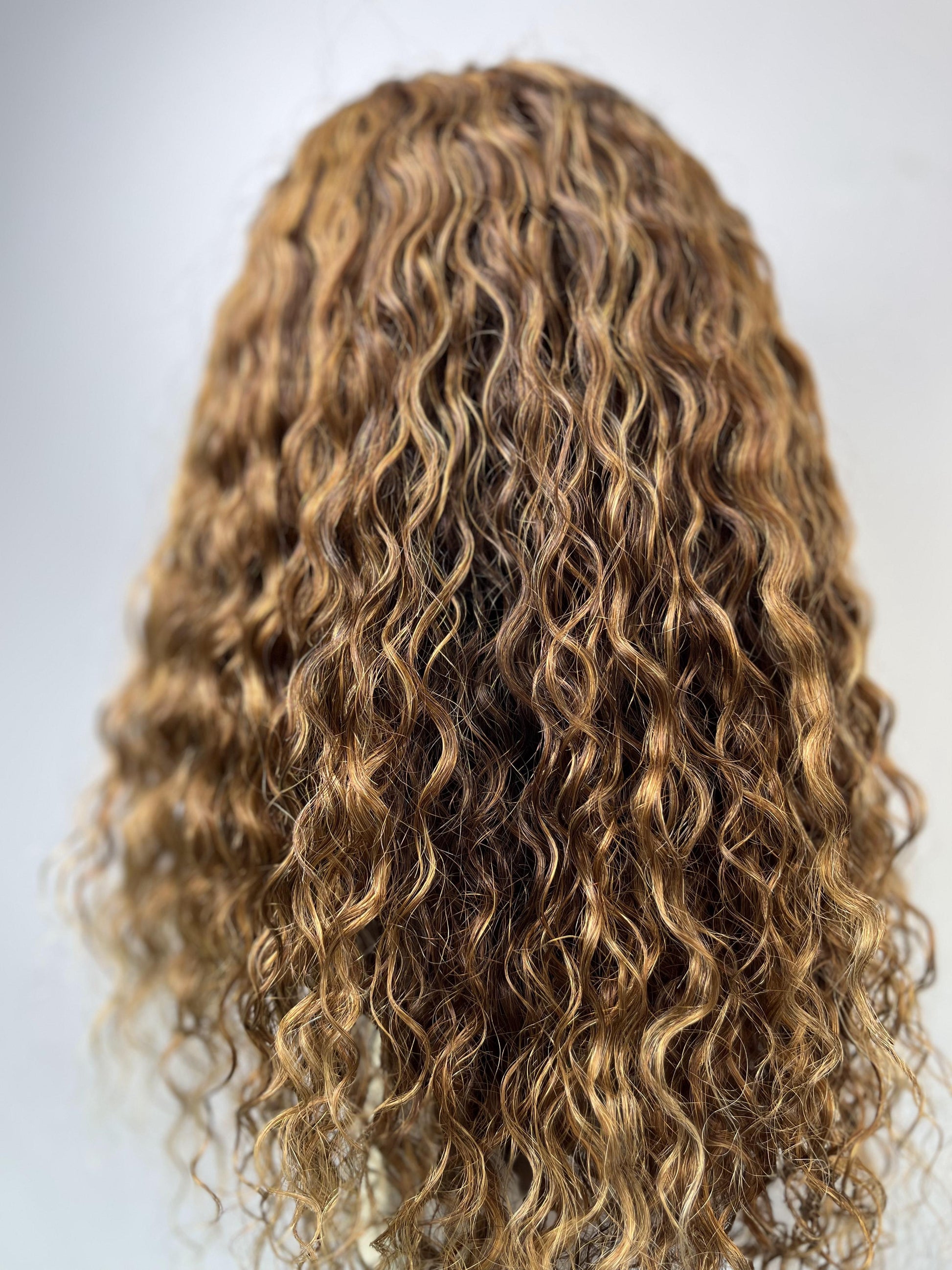 ( Highlights Curl) - Made with high-quality human hair. 20-inch length, 150% density, bleached knots, pre-plucked, baby hairs added.