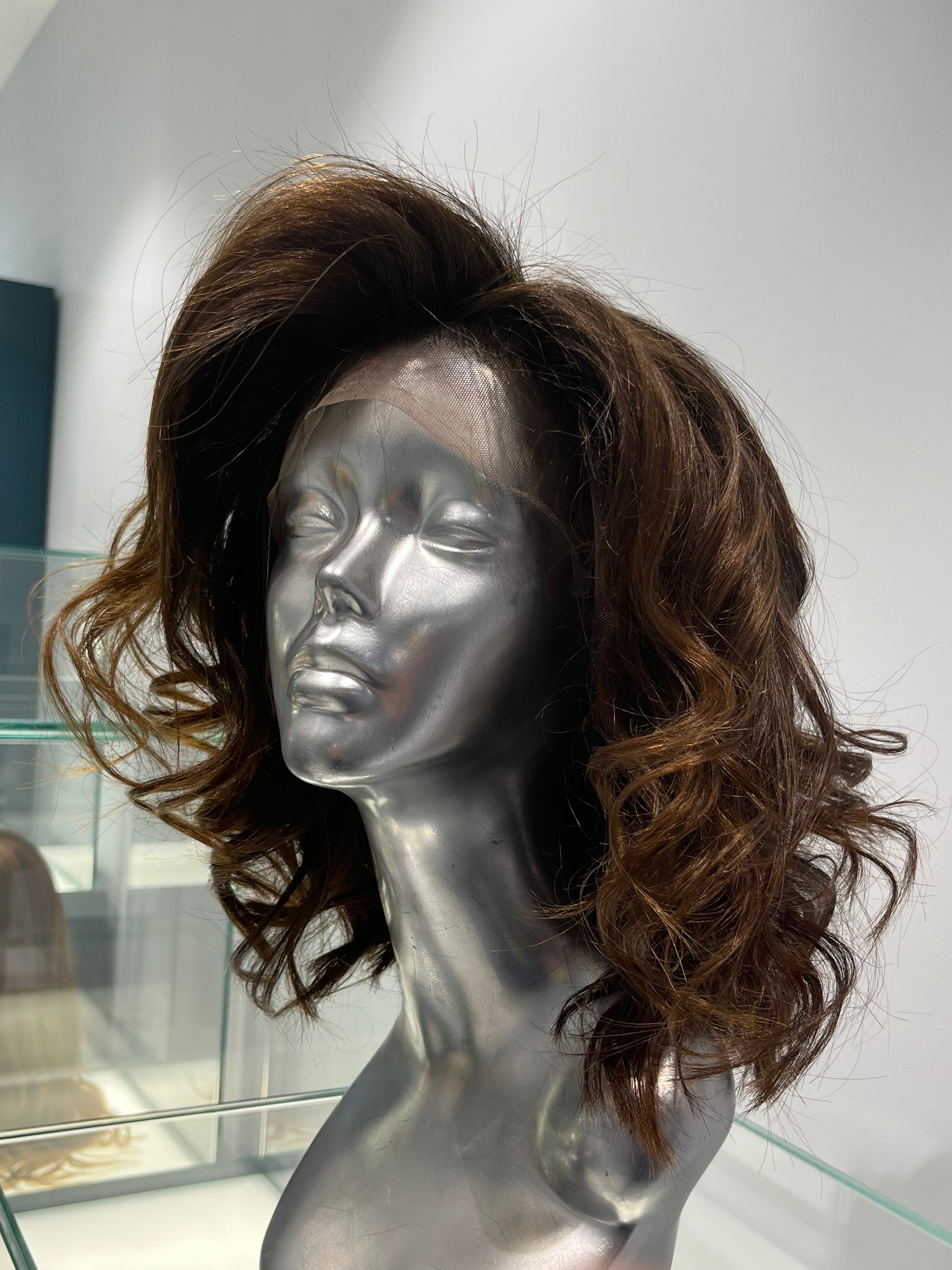 ( Brown) front lace wig - made with high-quality human hair. 15-inch length,