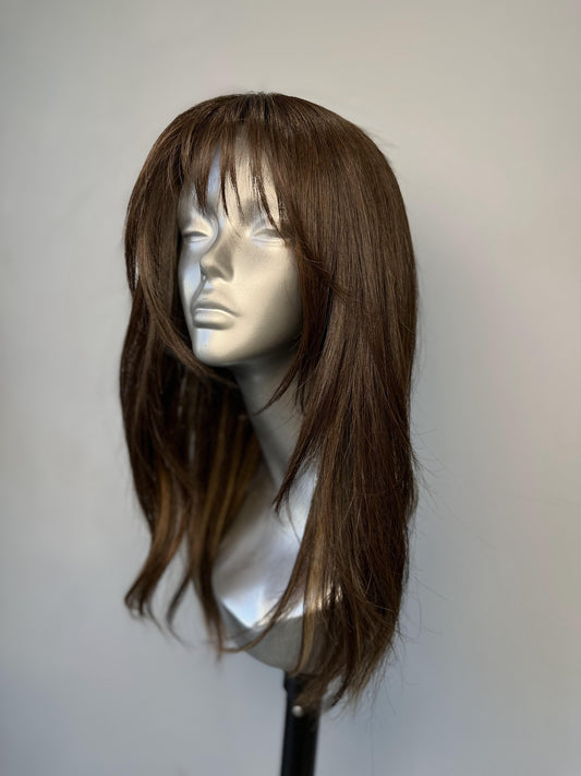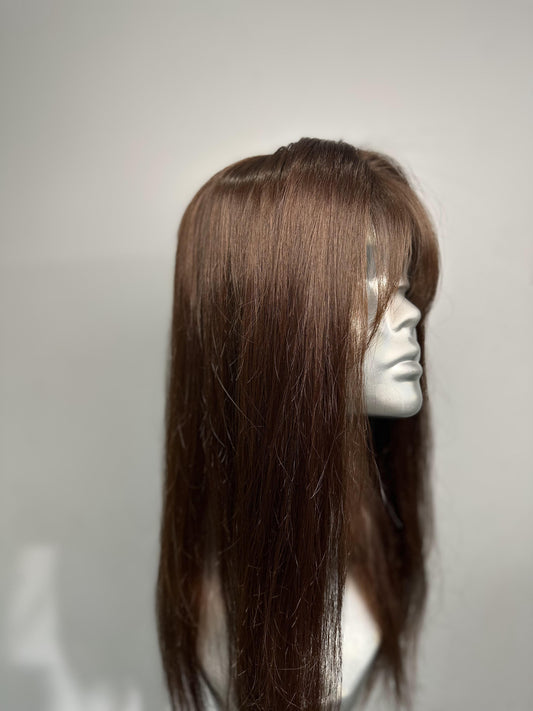 Elegant Chestnut Brown Silk Base Topper | 18" Length