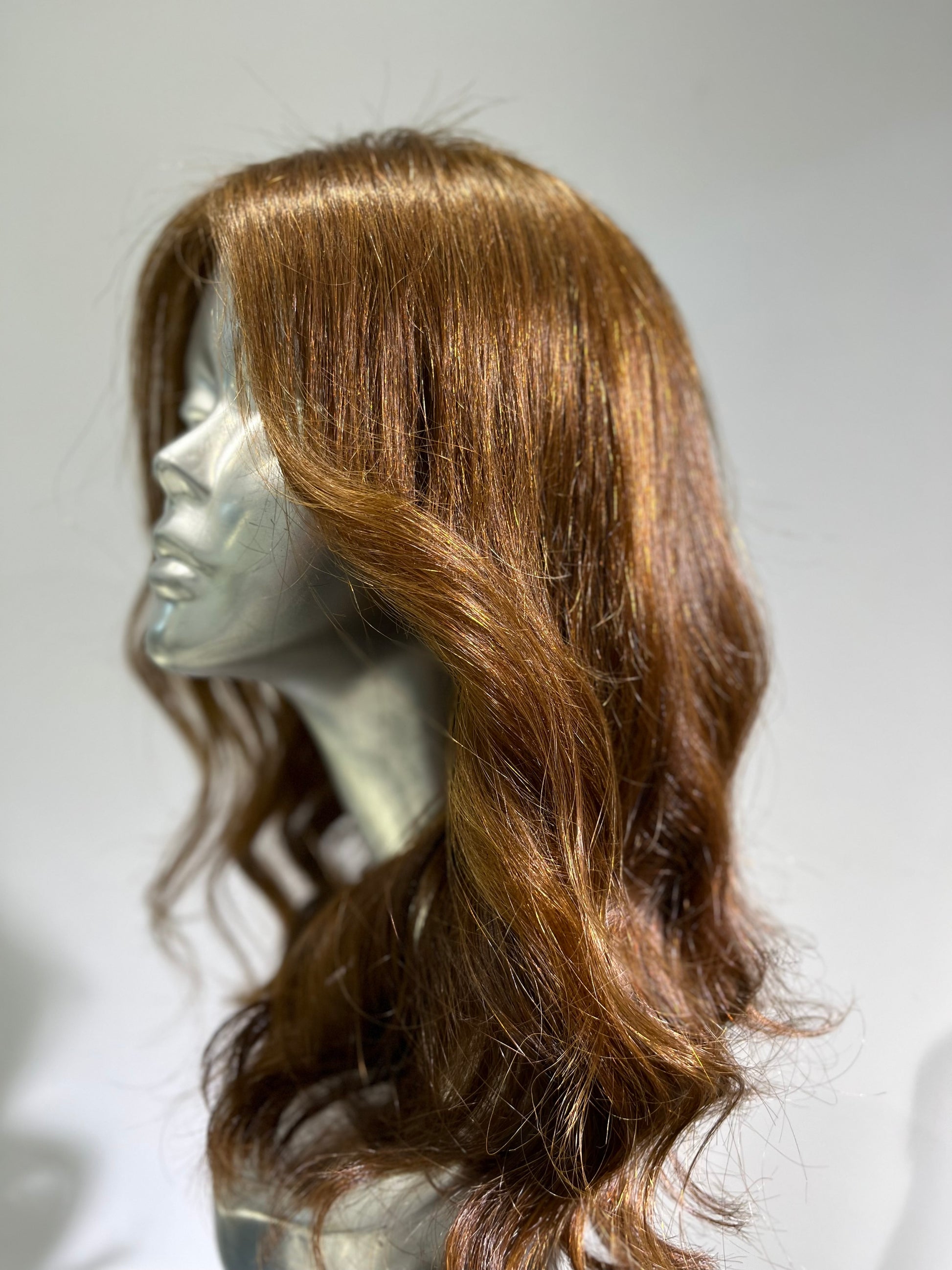(Light Brown) - Made with high-quality human hair. 18-inch length, 130% density, bleached knots, pre-plucked, baby hairs added.