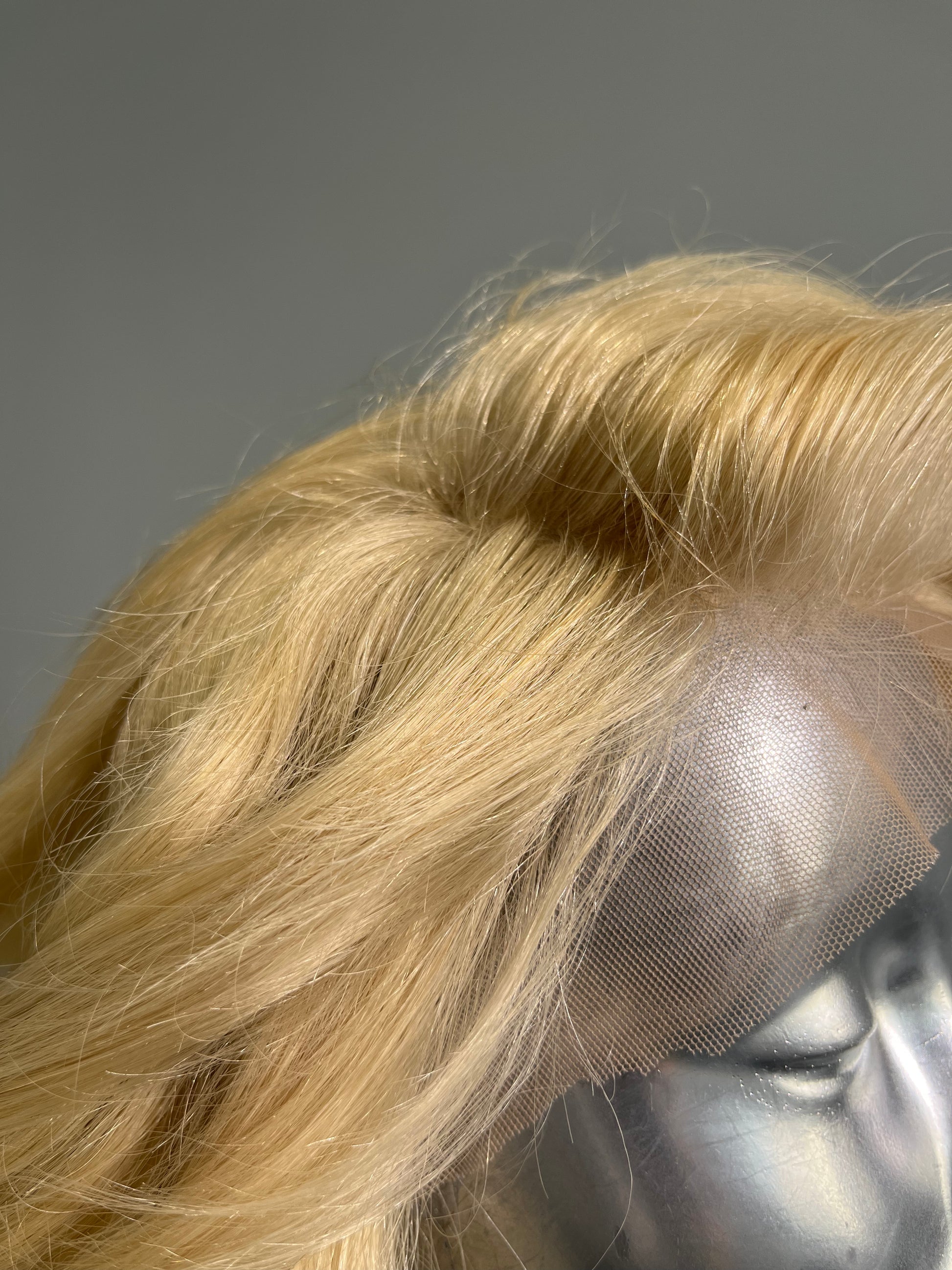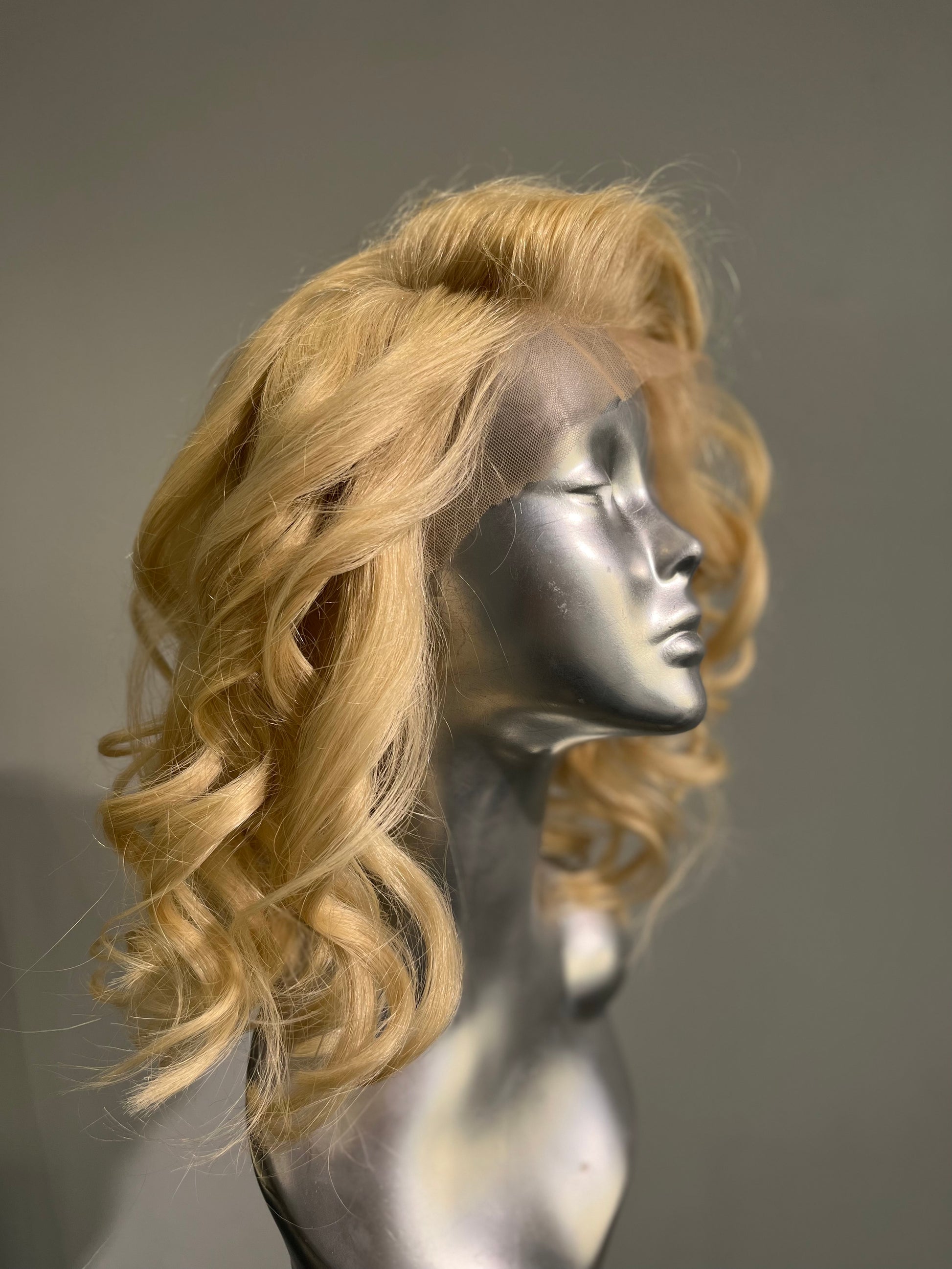 (Ultimate Blonde) - Made with high-quality human hair. 14-inch length, 150% density, bleached knots, pre-plucked, baby hairs added.