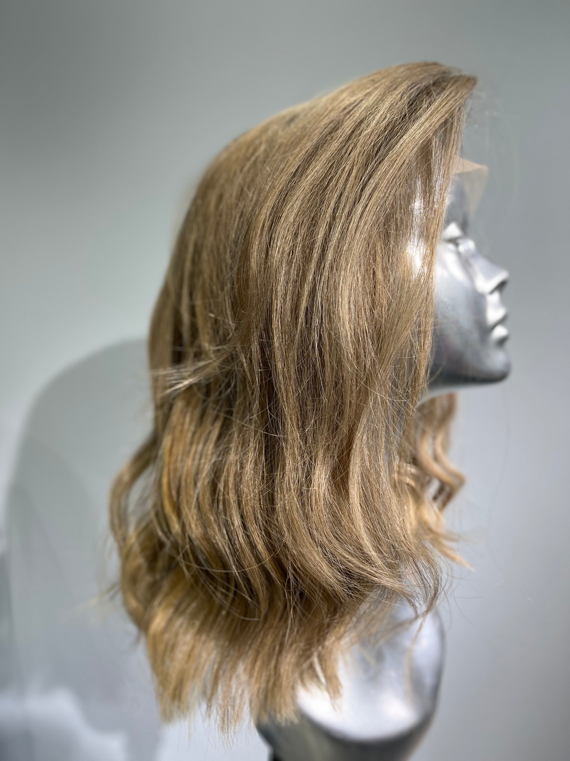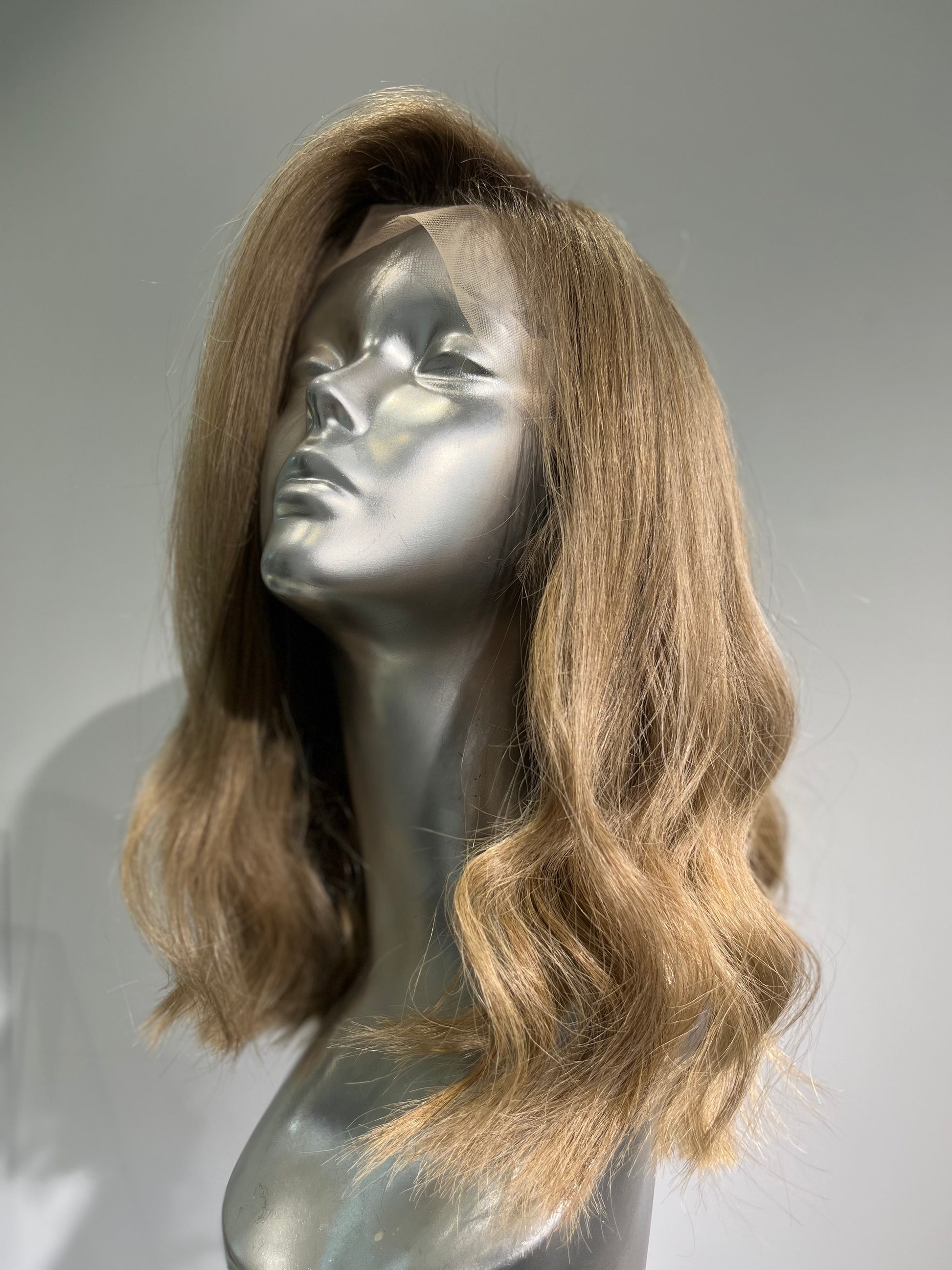 ( Ultimate beach blonde) front lace wig - made with high-quality human hair. 16-inch length, 180% density, pre-plucked Bleached knots lace pre-cut, baby hairs added.