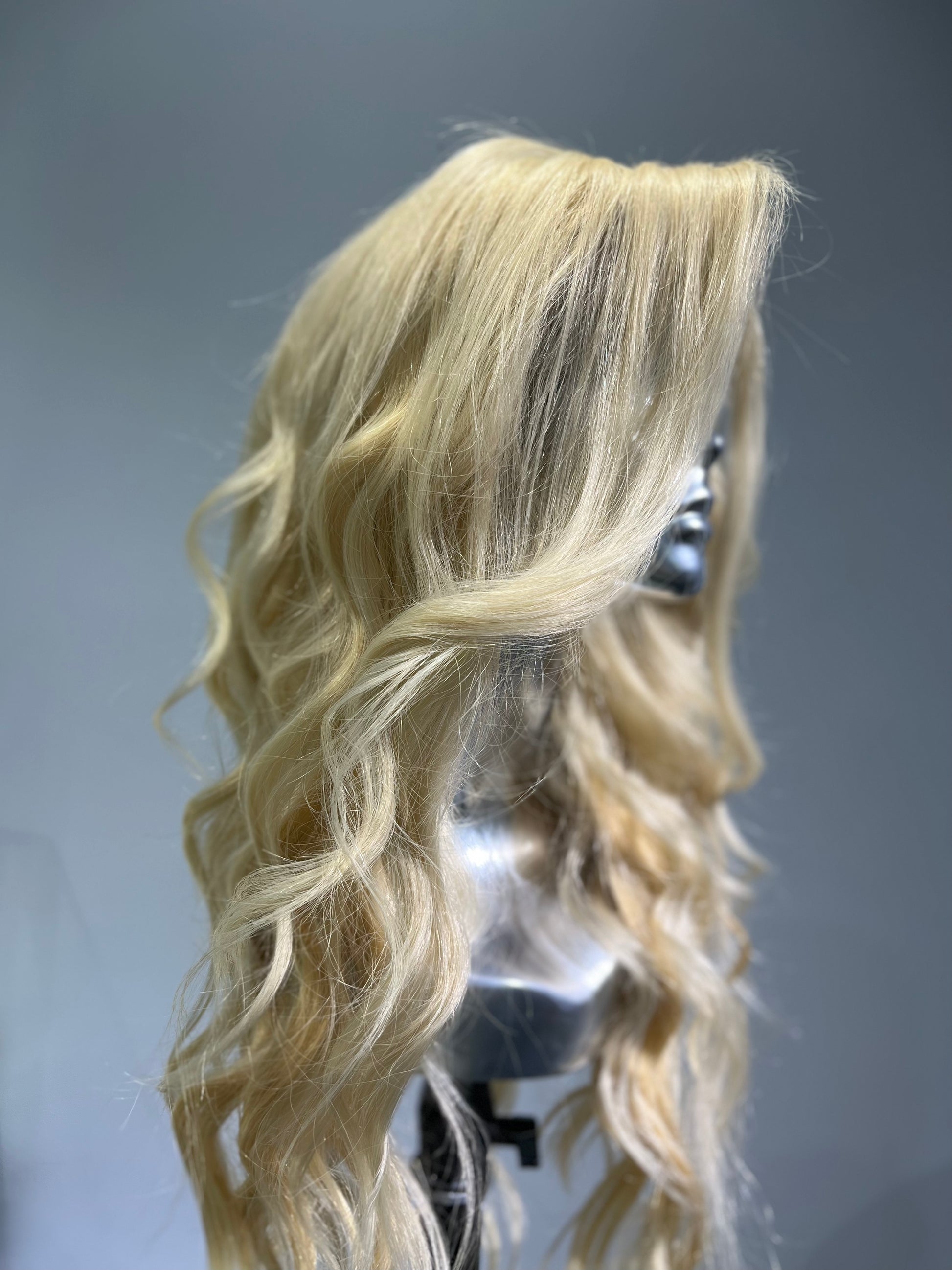 (Vanilla Blonde) - made with high-quality human hair. 26-inch length, 150% density, bleached knots, pre-plucked, baby hairs added.