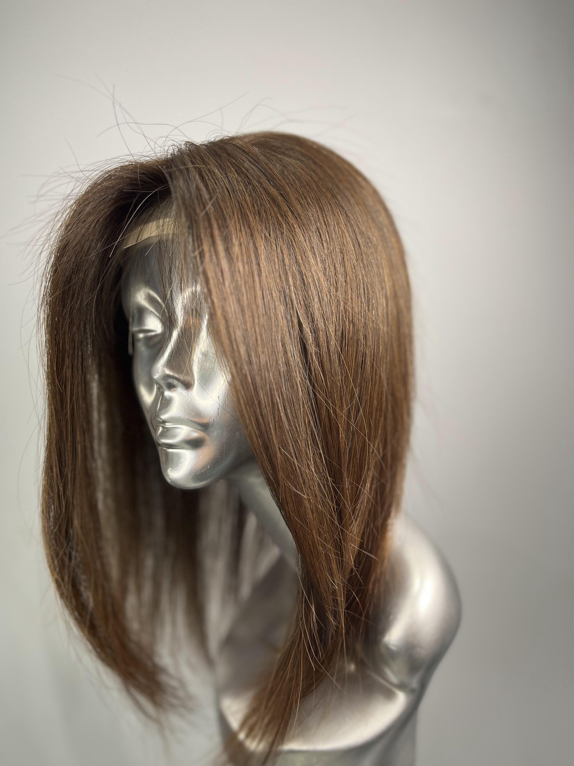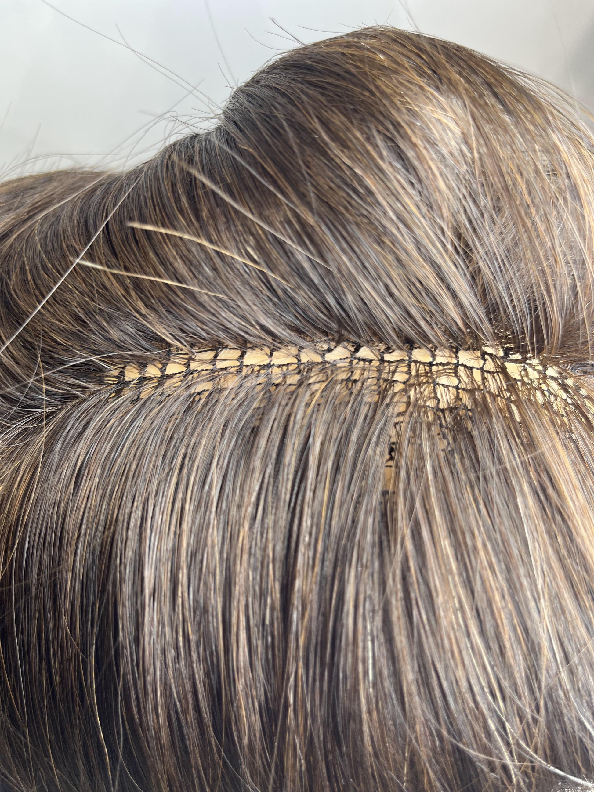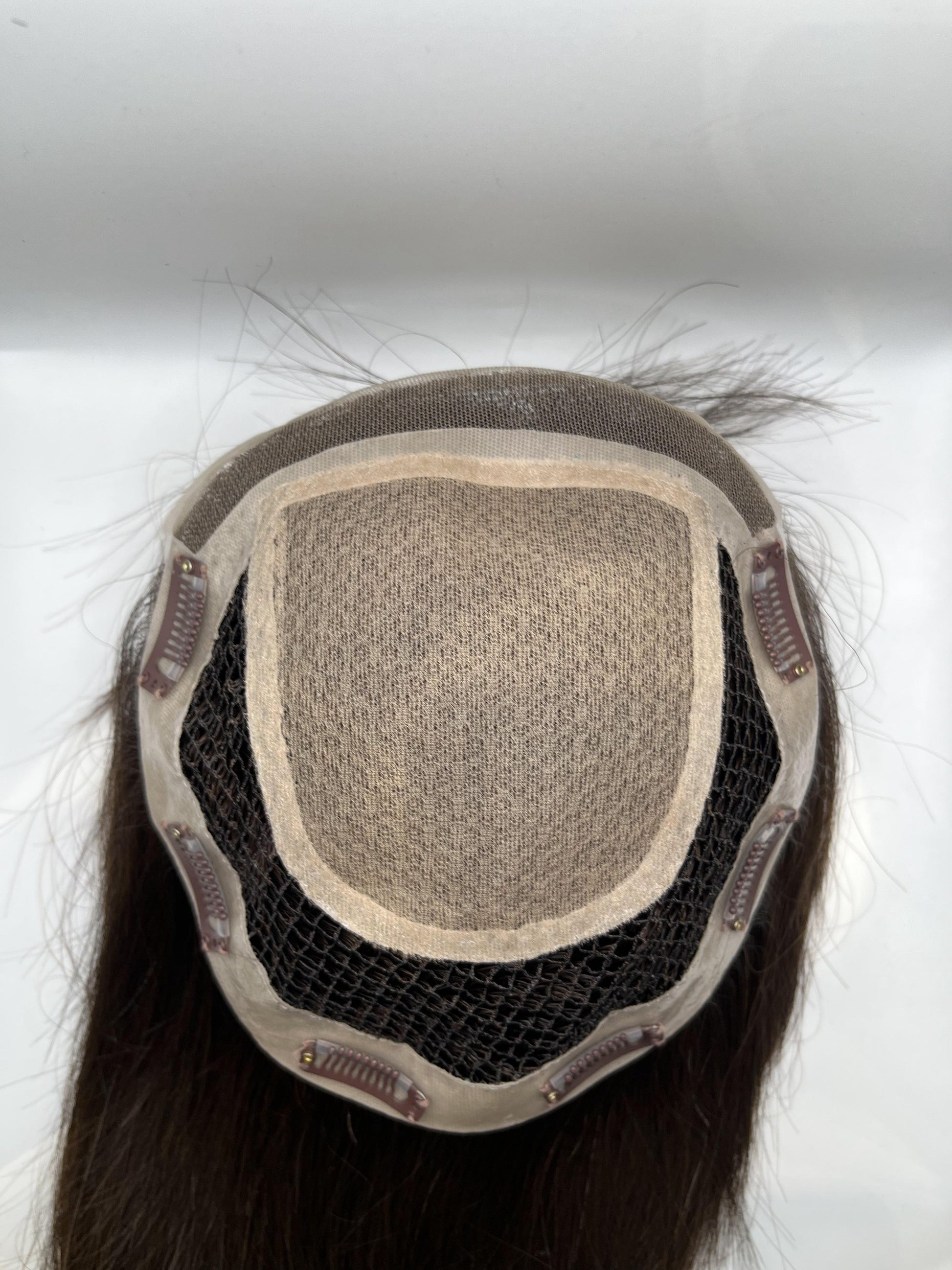 8x8 Inches Topper, silk base, PU-round, net,  and lace front with 150% Density of 100% premium human hair.