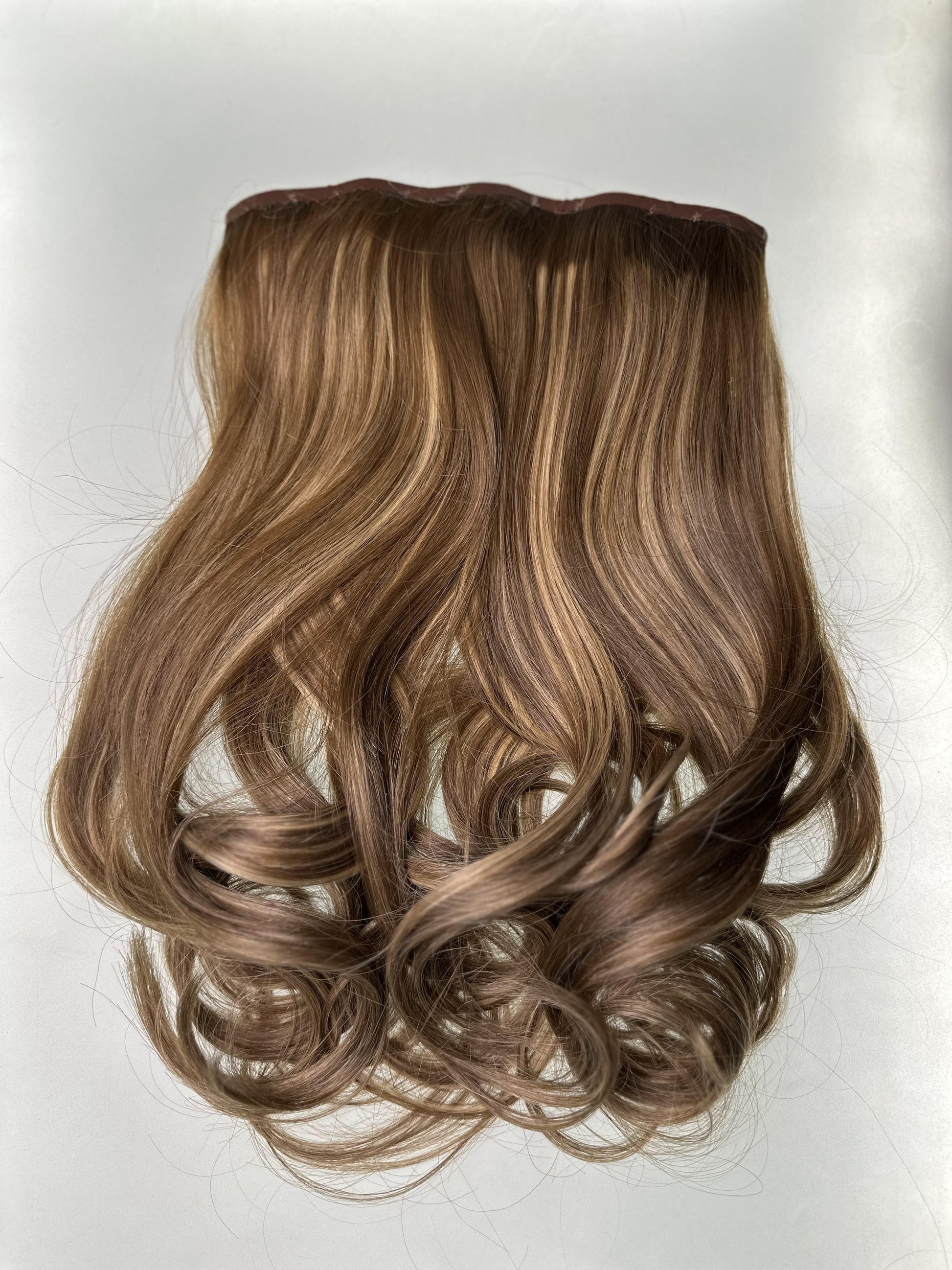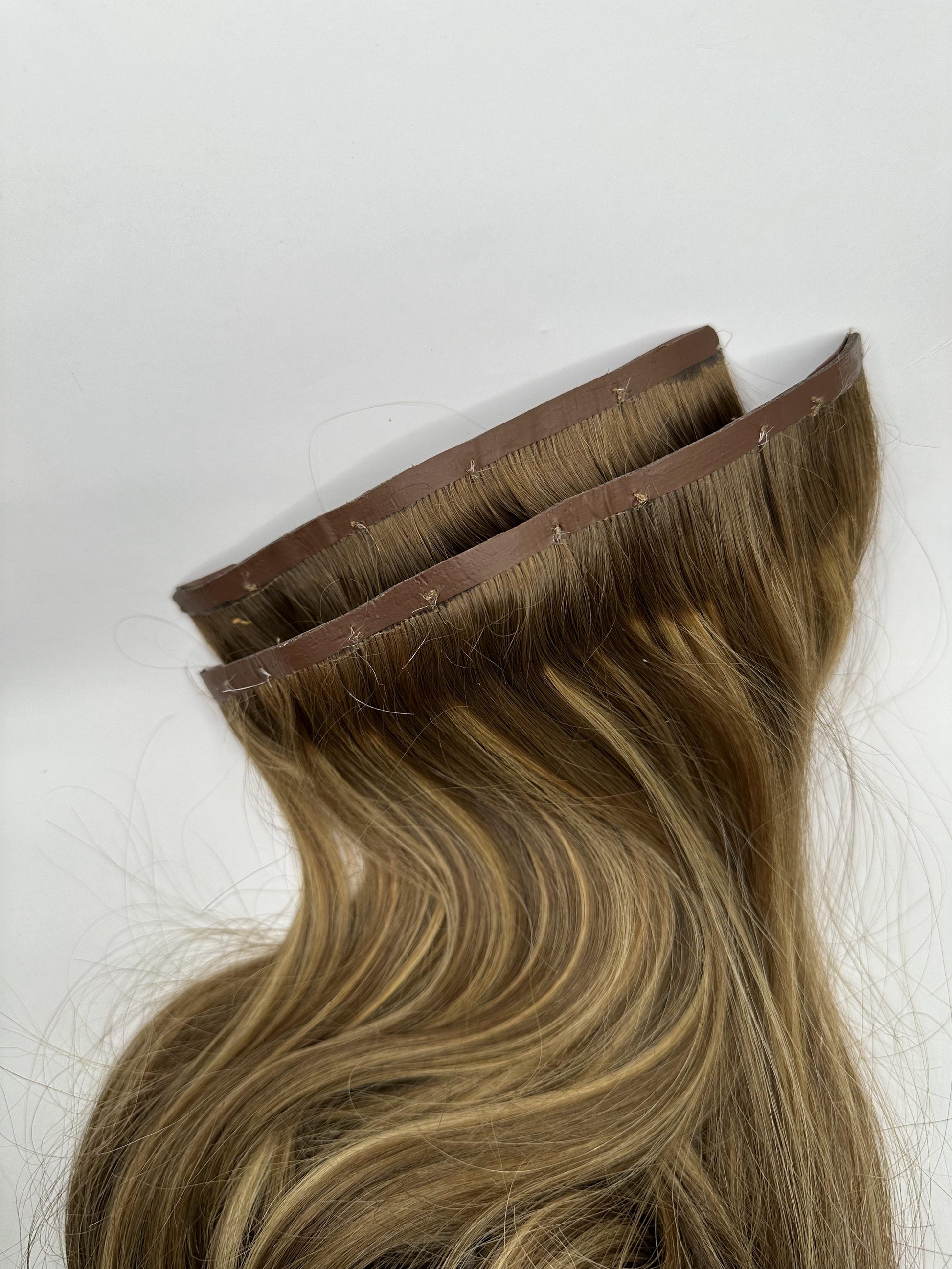 Caramel Highlighted PU Base Clip-In Hair Extension Set - Seamless Virgin Human Hair