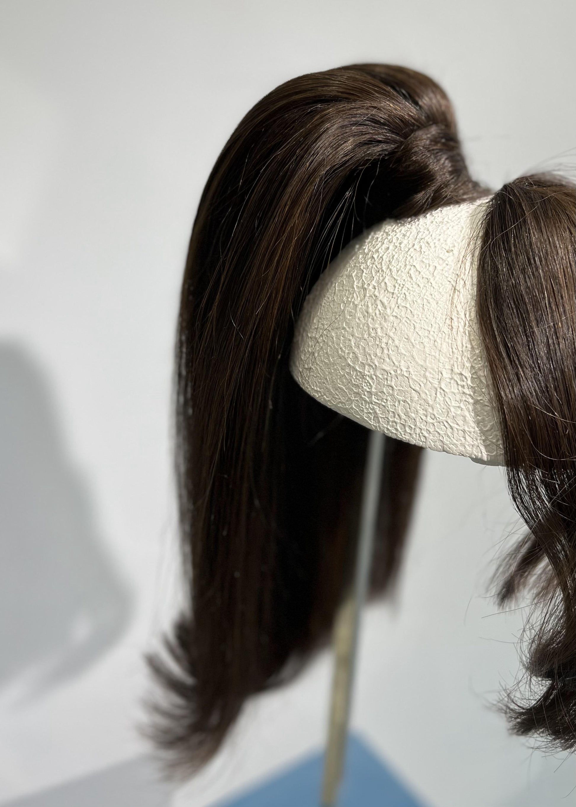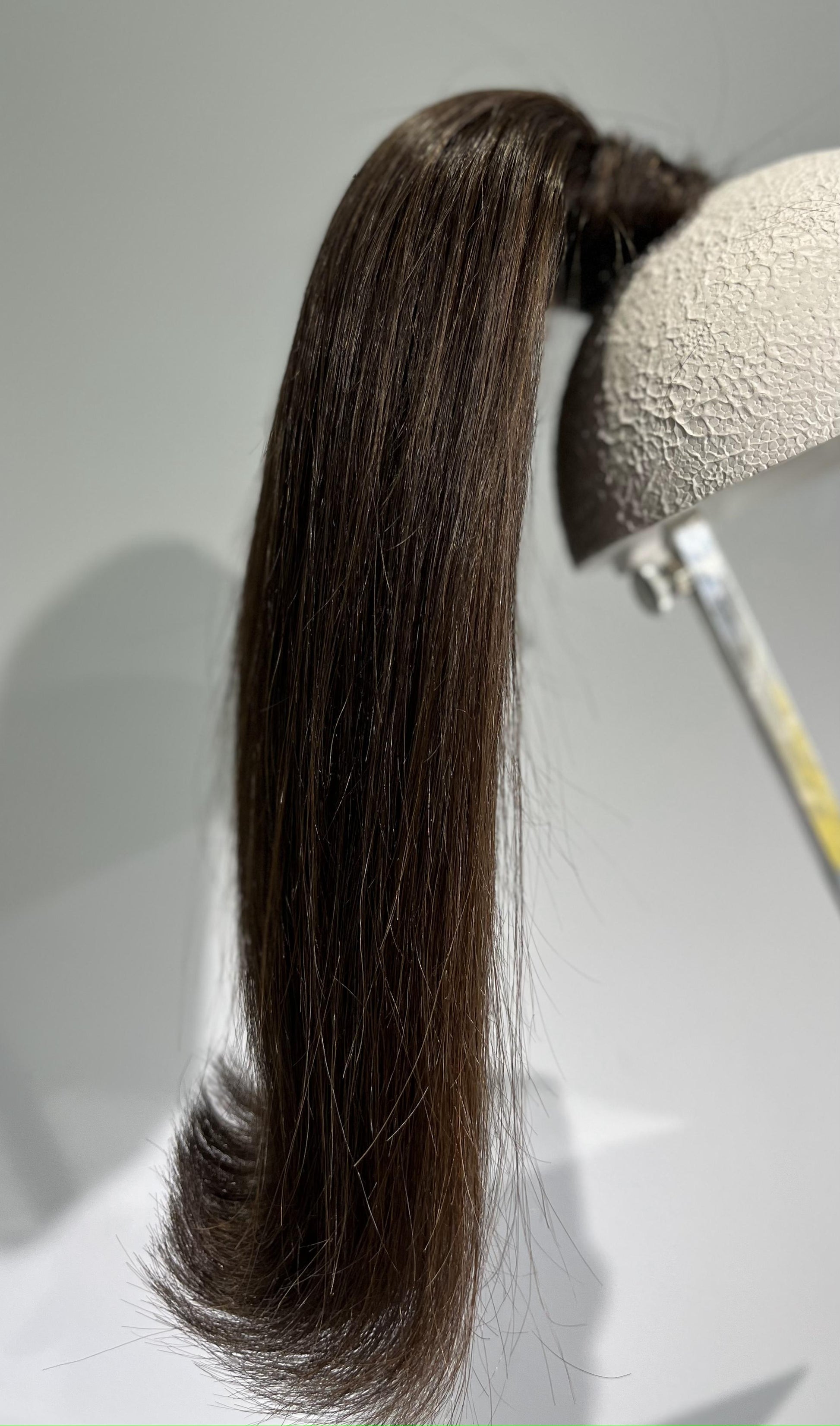 (Dark Brown) Velcro Flipped pony-tail for a secured snatched vintage glam look. Made with 100% premium human hair.