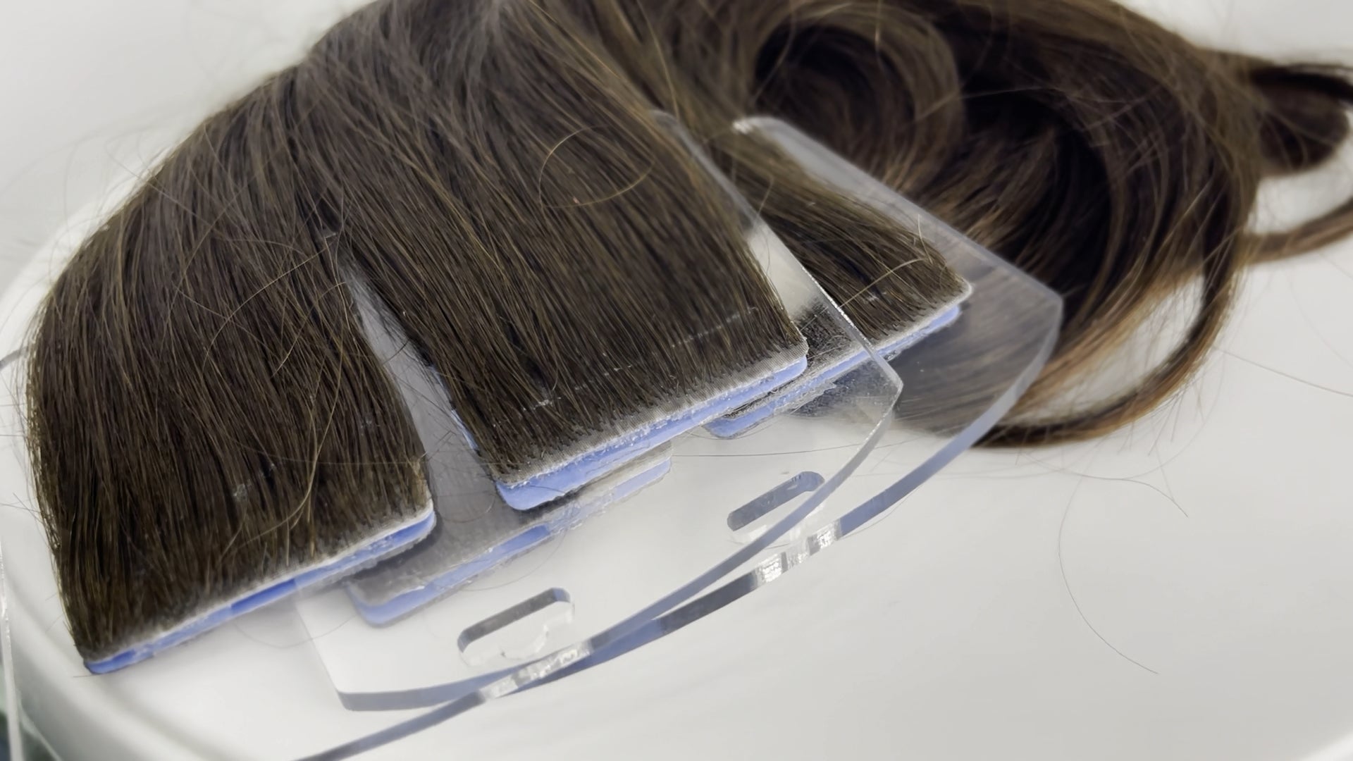 Tape-in extensions, seamless base with ventilated hair for an ultra carefree natural look with 26 Inches premium human hair of 20 single pieces.